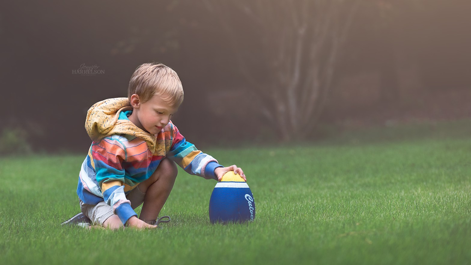 It’s that time of year! The big kids-at-heart are in the football spirit, and the little ones are too! I caught this guy doing one of the things he loves best: playing ball.